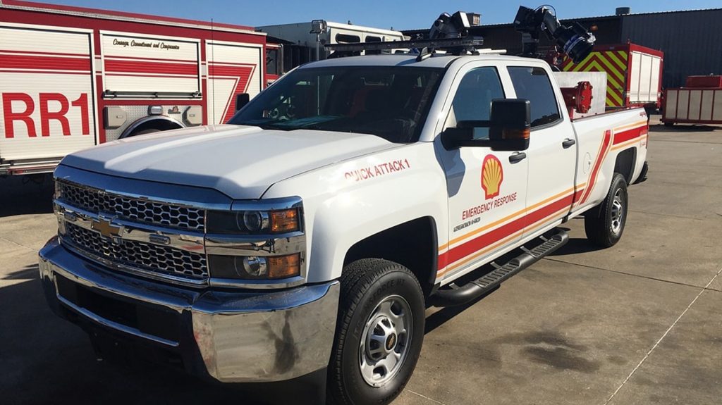 Chevrolet Chassis, two Electric Monsoon Monitors, two 2000 GPM Electric Nozzles