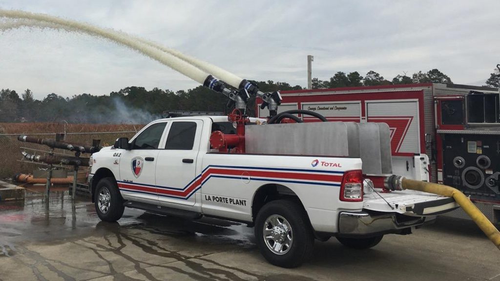 2023 Dodge crew cab 4×4, Dual TFT 2000 GPM monitors, Dual hose storage for’ of 6” hose, Provisions for single foam tote mounting